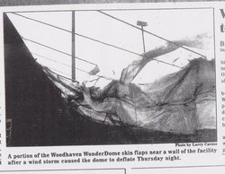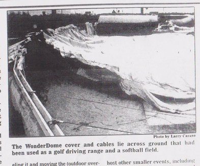In spite of this, the Wonderdome would hold its own for at least the first 3 1/2 hours of the storm. Attendance was low, but driving range practice was in progress. In a promise by the manufacturer, it was designed to withstand 100 MPH winds (though it was never mentioned if it was either sustained winds, or gusts).