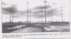 It would indeed take a few more years for activity to finally resume on the property. The skin had been hauled away at the beginning, but the base became an eyesore and was finally removed later. It is now presumably a ballfield, and the light poles which surrounded the Wonderdome a generation ago now shine – outdoors – on the new generation.